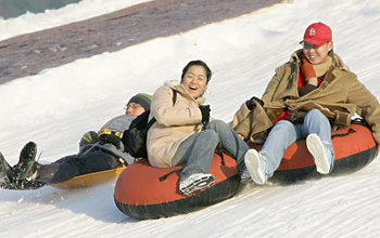 特別に作られた丈夫な浮き輪やタイヤのようなものです。雪のスロープを一気に滑降!子供から大人まで気軽にチャレンジできる雪遊びのひとつ。 雪面に近いのでスピード感とスリルを楽しめます。子供用のコースは傾斜も緩いので怖くないので安心です。 ★料金: 無料 (入場料に含まれています。) ★実施場所:サブエリア