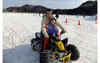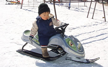 バギーとは砂地や砂利道を走行する4輪車です。雪上での乗車体験は、また一味違って、おもしろいですよ!キッズランド内に専用コースを造りました。小さなお子様は、お父さん、お母さんと御一緒にどうぞ!10歳以上のお子さんはお1人でも乗れます!